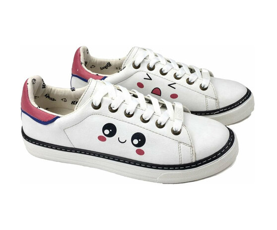 Voeg wat speelsheid en plezier toe aan je schoenen collectie met de Goby Kawaii Smile Dames Sneakers!