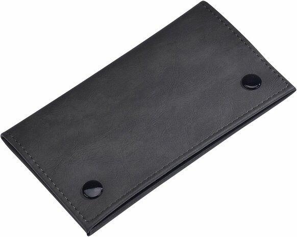 De etui is gemaakt van kunstleer, wat zorgt voor een stevige en onderhoudsvriendelijke afwerking. Het materiaal is soepel in gebruik en eenvoudig schoon te houden. Het platte ontwerp maakt de etui geschikt voor jaszak, broekzak of tas.
