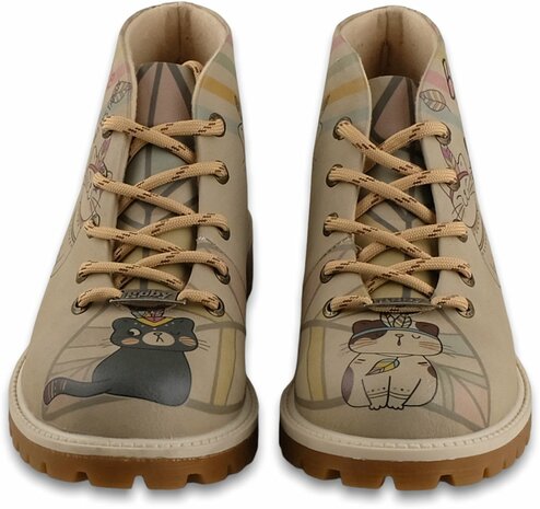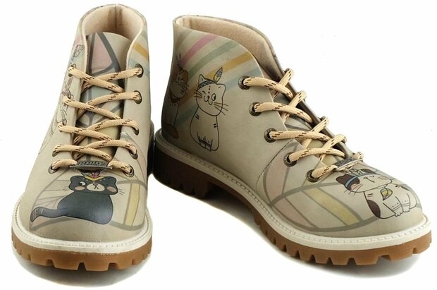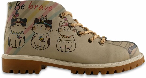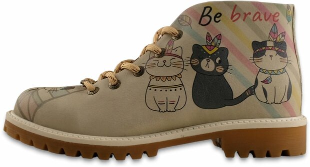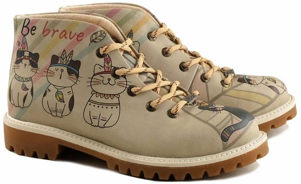 Stap vol zelfvertrouwen de wereld in met de Goby Be Brave dames veterboots! Met hun speelse kattenprint en inspirerende boodschap zijn deze boots een perfecte mix van comfort en stijl. Het unieke design met zachte aardetinten en kleurrijke details maakt deze schoenen tot een echte eyecatcher.