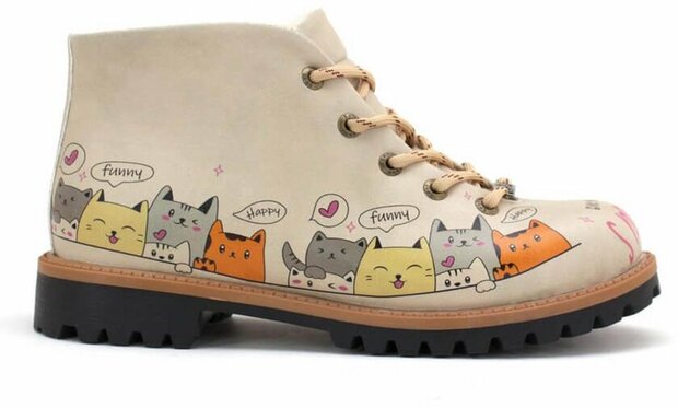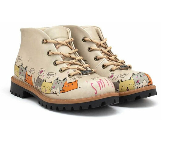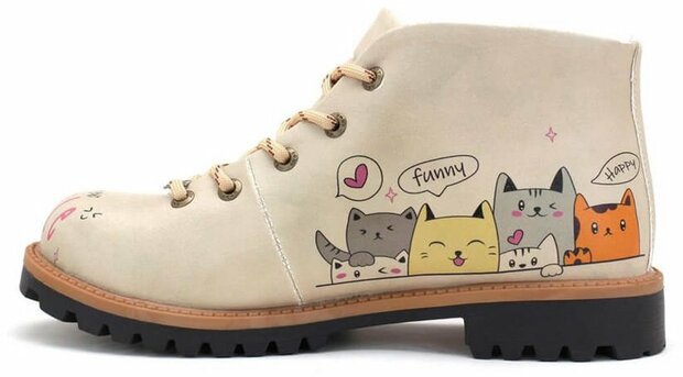 Goby CatMood Boots – Damen Schnürstiefel – Cartoon-Katzen – Veganes Leder – Handgefertigt