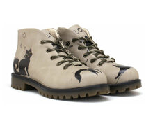 Zeigen Sie Ihre Persönlichkeit mit diesen einzigartigen Goby Damenstiefeln in Größe 35. Der beigefarbene Grundton wird durch ein verspieltes Design mit einer schwarzen Katze, Herzen und Pfotenabdrücken verziert – perfekt für Katzenliebhaber, die originelle Mode mögen.