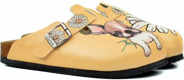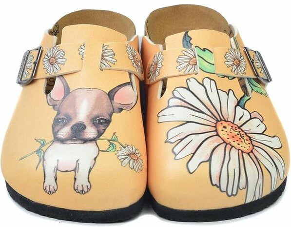 Geef je outfit een schattige en charmante twist met de GOBY Clogs met Dog Holding Daisy Ontwerp. Deze handgemaakte klompen, versierd met een lief ontwerp van een hond die een margriet vasthoudt, zijn perfect voor dierenliefhebbers en iedereen die houdt van unieke en hartverwarmende designs.
