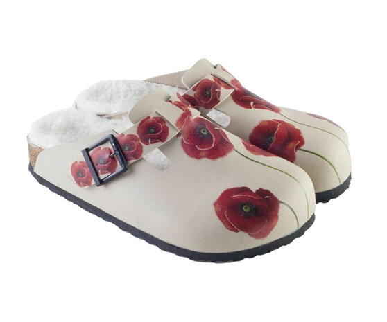 GOBY Clogs met Rode Bloemen - Handgemaakt