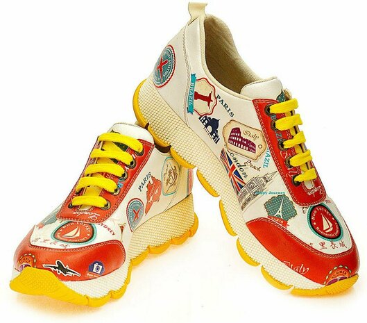 Zeigen Sie Ihre Leidenschaft für Reisen und Stil mit diesen einzigartigen Sneakers. Egal, ob Sie ein Weltreisender sind oder von europäischen Abenteuern träumen, diese Schuhe verleihen Ihrer Garderobe einen Hauch von Kultur und Klasse.