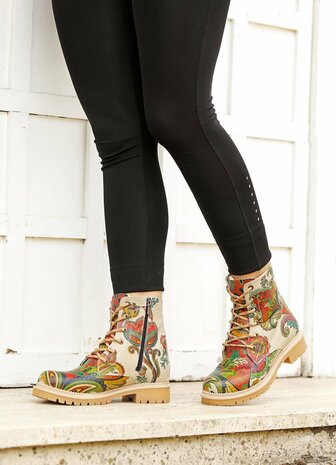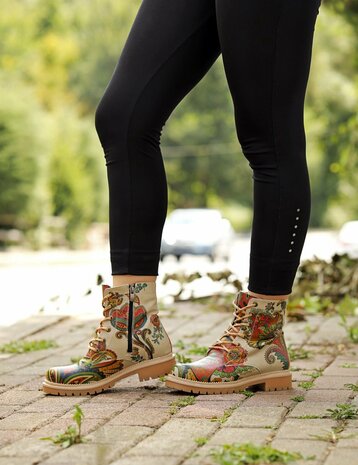 Ontdek de perfecte balans tussen comfort en stijl met de GOBY Flowerart Ankle Boots, een meesterwerk dat elke vrouw in haar schoenenkast moet hebben. Deze schitterende enkellaarsjes, vervaardigd uit 100% hoogwaardig kunstleer, bieden een diervriendelijk en duurzaam alternatief voor klassieke leren laarzen. De verfijnde bloemenprint, gecombineerd met de kleuren beige, rood en zwart, geeft een unieke artistieke flair aan je outfit, ideaal voor de modebewuste vrouw die op zoek is naar iets speciaals. De ronde neus zorgt voor extra comfort, terwijl de suède binnenvoering een luxe en zachte touch biedt aan je voeten, waardoor elke stap een genot is. De buitenlaag van kunstleer is niet alleen stijlvol maar ook onderhoudsvriendelijk, wat zorgt voor een langdurige prachtige look. De zool, gemaakt van een combinatie van kunstleer en kurk, biedt zowel duurzaamheid als flexibiliteit. Deze materialen zorgen samen voor een uitstekende grip en demping, waardoor je zelfverzekerd kunt lopen, of je nu door de stad struint of een avondje uit gaat. De GOBY Flowerart Ankle Boots zijn meer dan alleen schoenen; ze zijn een statement. Ze combineren modieuze flair met praktische functionaliteit, waardoor ze een veelzijdige aanvulling zijn op elke garderobe. Voeg een vleugje bloemenpracht toe aan je dagelijkse look en geniet van de tijdloze charme en het ongeëvenaarde comfort van de GOBY Flowerart Ankle Boots. Met deze laarsjes ben je altijd klaar om de wereld in stijl te veroveren.
