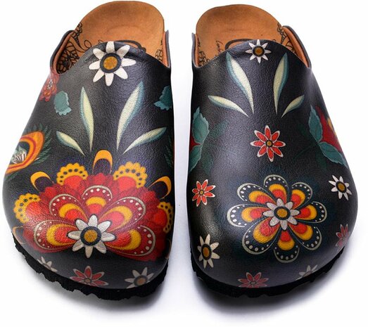 Stap in een wereld vol kleur en karakter met de GOBY Folk Garden Clogs. Deze handgemaakte klompen combineren traditionele volkskunst met modern comfort. Het levendige bloemenmotief op een zwarte achtergrond maakt elke stap bijzonder – perfect voor wie houdt van unieke, bohemian flair.