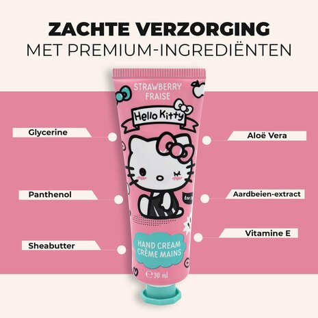 Verwen de kleine handjes met de Hello Kitty Handcrème Set - een must-have voor kinderen die van schattigheid en effectieve verzorging houden. Laat de betovering van aardbei en de vreugde van Hello Kitty de handjes van je kinderen omarmen, terwijl ze genieten van zachte en gevoede huid.