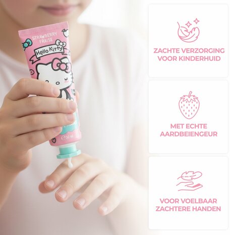 De Hello Kitty Handcrème Set is perfect voor kleine handjes en biedt intensieve hydratatie. Elke tube ruikt naar heerlijke aardbeien en zorgt voor blije zintuigen terwijl de handjes van je kinderen worden verzorgd. De handige verpakking maakt het gemakkelijk om de handcrème overal mee naartoe te nemen, of het nu op school, onderweg of thuis is.