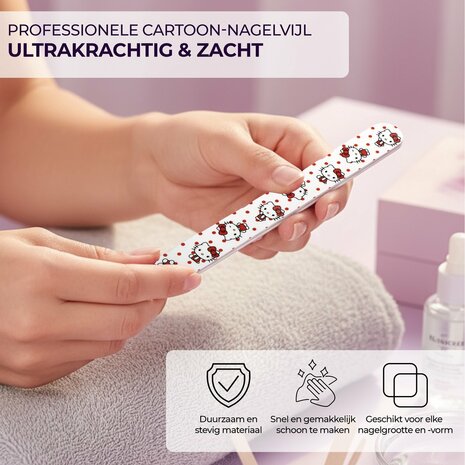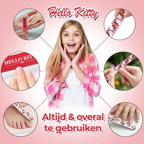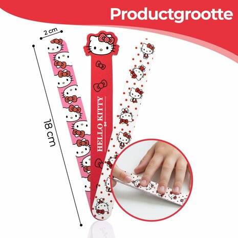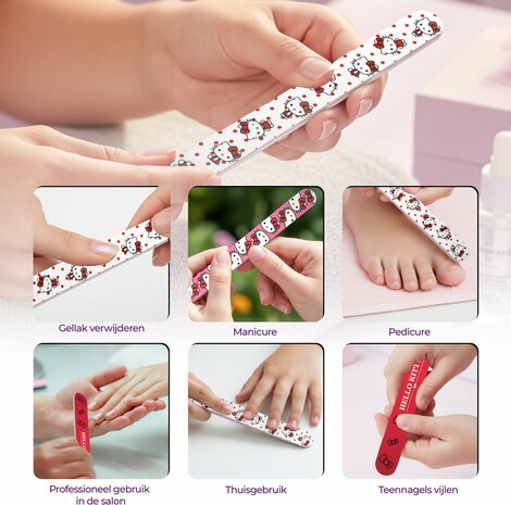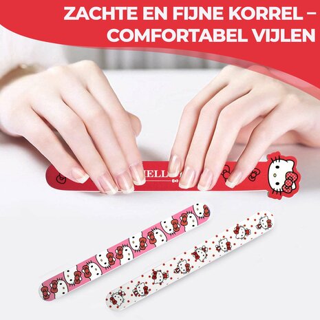 • Complete Nagelvijlenset: Bestaat uit 3 unieke Hello Kitty nagelvijlen met vrolijke designs, waardoor je altijd een geschikte nagelvijl bij de hand hebt voor al je nagelverzorgings behoeften.