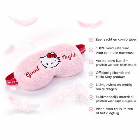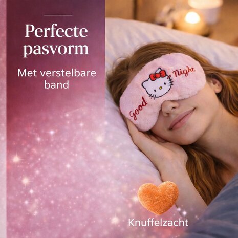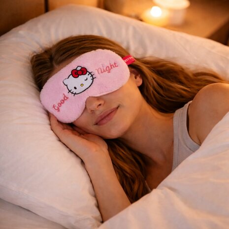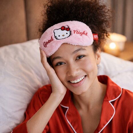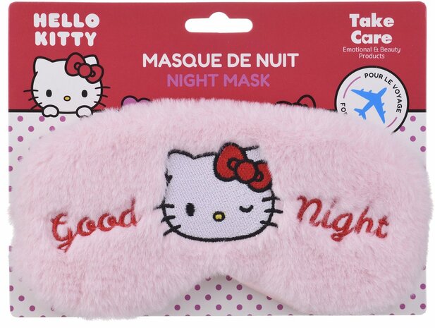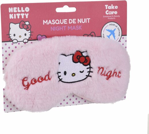 Zacht plush slaapmasker met Hello Kitty design van het merk Take Care. Het oogmasker is 100 procent verduisterend, comfortabel en ideaal voor een goede nachtrust.