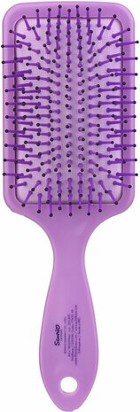 De flexibele borstelharen glijden soepel door het haar en verwijderen klitten zonder pijn of trekken. Dankzij de ergonomische handgreep ligt de borstel comfortabel in de hand – ideaal voor dagelijks gebruik. Geschikt voor zowel nat als droog haar, en voor alle haartypes.