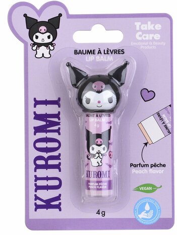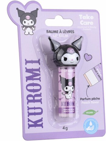 Deze Kuromi lip balm met speelse 3D dop verzorgt de lippen en heeft een zachte perziksmaak. De lippenbalsem is hygiënisch verpakt in een blister en door het compacte formaat ideaal om overal mee naartoe te nemen.