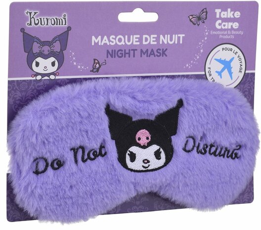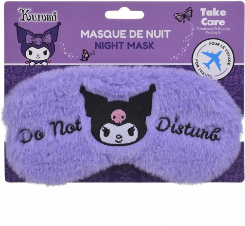 Zacht plush slaapmasker met Kuromi design van het merk Take Care. Het oogmasker is 100 procent verduisterend, comfortabel en ideaal voor een goede nachtrust.