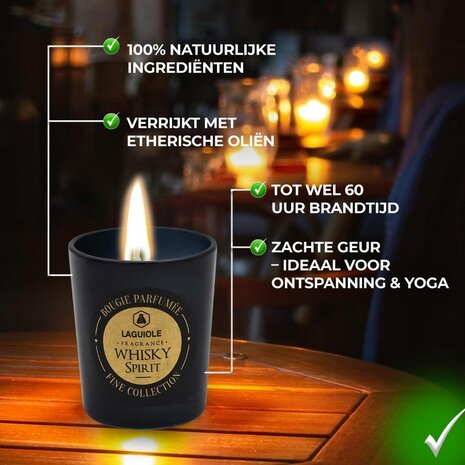 Geniet van de Essence van Luxe met Laguiole De Laguiole Geurkaarsen bieden een ongeëvenaarde geurbeleving die je huis transformeert in een warme en elegante ruimte. Gemaakt van natuurlijke ingrediënten en essentiële oliën, zorgen ze voor subtiele en aangename aroma's van Whisky Spirit, Cognac Spirit en Rhum Spirit.
