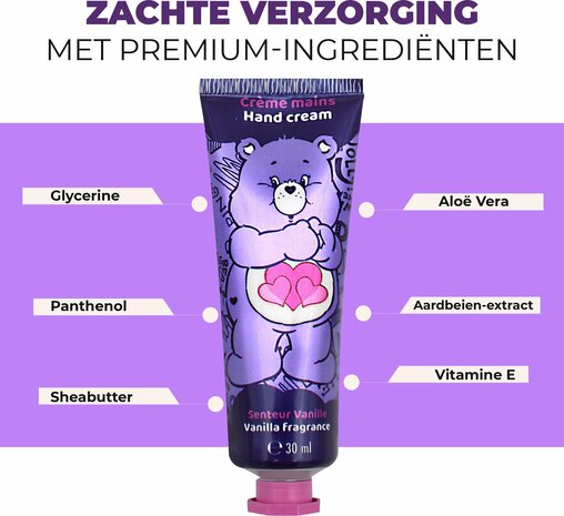 Les Bisounours Handcrème is perfect voor kleine handjes en biedt intense hydratatie. Elke tube verspreidt een magische geur die de zintuigen van je kinderen stimuleert terwijl hun handen worden verzorgd. De handige verpakking maakt het makkelijk om de handcrème overal mee naartoe te nemen - op school, onderweg of thuis.