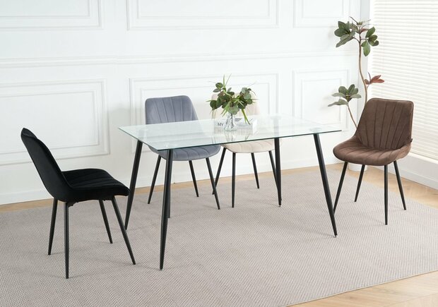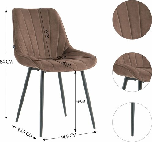 Alfa eetkamerstoel verenigt stijl met functioneel ontwerp en is speciaal ontwikkeld om een schitterende toevoeging te bieden aan jouw eetkamer, keuken of woonkamer. De Alfa eetkamerstoel garandeert optimaal zitcomfort door het slijtvaste fluweel en het ergonomische ontwerp. Dit model is ook verkrijgbaar in een set van 2, 4, 6 eetkamerstoelen. Kenmerken: