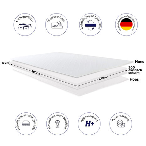 Dankzij de ademende structuur blijft lucht circuleren, wat transpiratie en geurtjes vermindert. De hypoallergene hoes beschermt tegen huisstofmijt en allergieën, ideaal voor mensen met een gevoelige huid.
