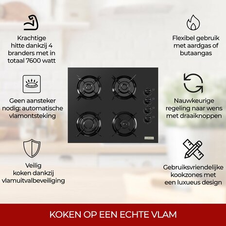Met een gasafsluitsysteem dat automatisch de gastoevoer stopt bij vlamuitval, geniet je van extra veiligheid tijdens het koken.