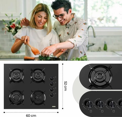 1x 4-Pits Gas Zwarte Inbouw Kookplaat |