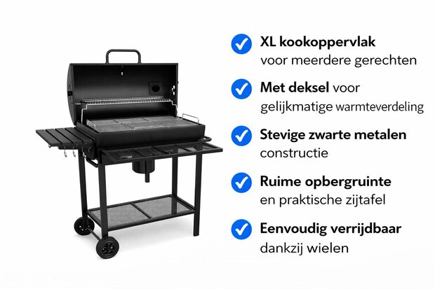 Het deksel zorgt voor een optimale warmtecirculatie en helpt de temperatuur constant te houden. Dit resulteert in gelijkmatig gegaarde gerechten met een volle grillsmaak. Of je nu direct grilt of indirect barbecueët, deze barbecue geeft je meer controle over het bereidingsproces.