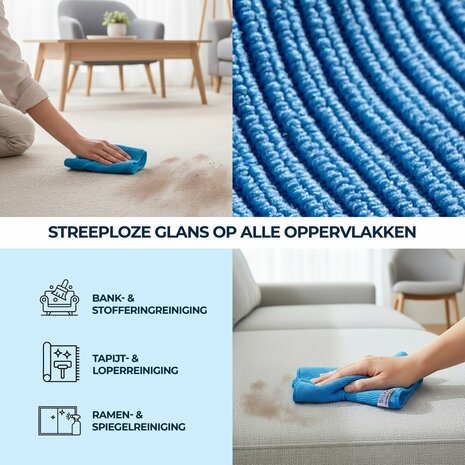 Je huis en auto schoonmaken is makkelijker en effectiever dan ooit met de Tapijt Meubel Doek! Met de kracht van microvezeltechnologie verwijder je snel vlekken uit je tapijten en stoelen en geniet je altijd van een schone omgeving.