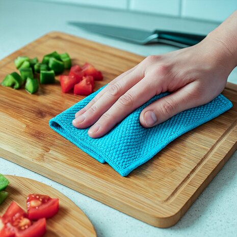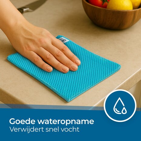 Deze doek is geschikt voor vrijwel alle oppervlakken in huis, met uitzondering van glasoppervlakken. Voor glas en spiegels wordt gebruik afgeraden, omdat dit strepen kan veroorzaken. Ideaal voor keukenbladen, tafels, kastdeuren en andere vlakke oppervlakken. Bij vochtig gebruik reinigt hij zonder sporen achter te laten, en dat zonder de noodzaak van schoonmaakmiddelen.