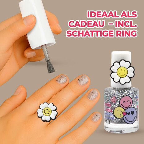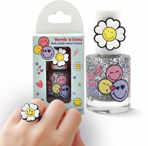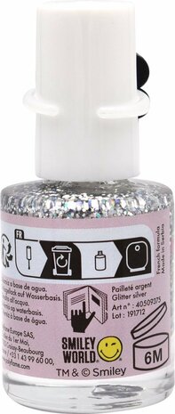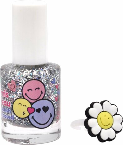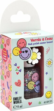 Smiley Nagellak met glitters- Afwasbaar - Waterbasis - 9ml