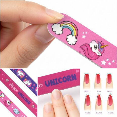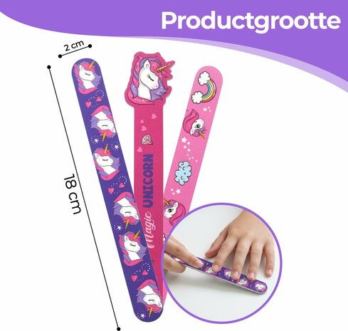 - Complete Nagelvijlenset: Bestaat uit 3 unieke Unicorn nagelvijlen met vrolijke designs, waardoor je altijd een geschikte nagelvijl bij de hand hebt voor al je nagelverzorgings behoeften.