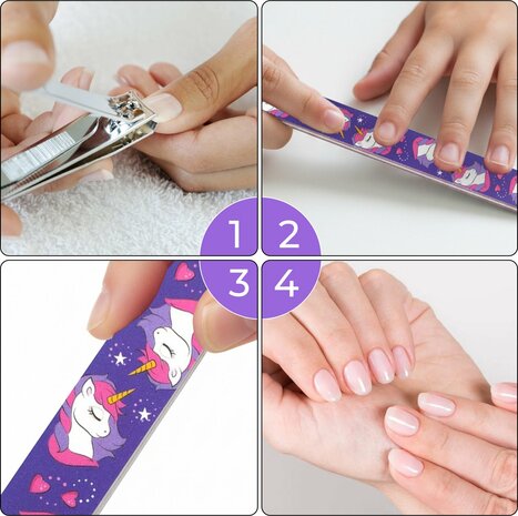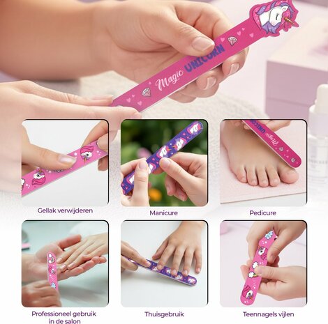 - Reisformaat: Perfect compact voor in je tas, etui of voor op reis, zodat je met deze Unicorn nagelvijlenset altijd verzorgde nagels hebt.